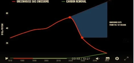 Nous pouvons encore réduire les émissions dans les années 2030 et 2040, mais plus nous attendons, moins ces actions seront efficaces. Elles ont tout simplement moins de temps pour agir sur l'atmosphère.L'élimination du carbone est également importante, mais elle est confrontée à une bataille difficile parce qu'elle commence pratiquement à zéro et qu'il faudra des années pour atteindre l'échelle du gigatonne qui est nécessaire. Elle est donc importante, mais dans l'ensemble, son impact cumulatif total est assez faible. Et lorsque l'on fait les calculs correctement, que l'on fait ce que l'on appelle l'intégrale, ou l'aire sous la courbe dans l'évaluation des solutions climatiques, on trouve quelque chose d'assez extraordinaire. La réduction des émissions est vraiment ce qui compte ici. Quatre-vingt-seize pour cent (96 %) de ce qu'il faut pour atteindre le niveau zéro consiste à réduire les émissions. Et les trois quarts de ce pourcentage proviennent des premières décennies de réduction des émissions. C'est incroyable.